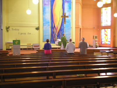 This afternoon a congregation of 16 attended the eleventh monthly Mass. In a remarkable turn-around, this is the first time that there has been an increase in attendance over two consecutive months.